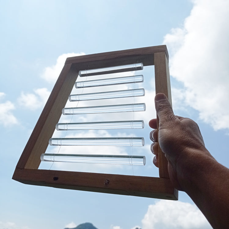 Este hermoso instrumento esta hecho de 7 barras de cuarzo puro. Tiene un sistema cromático para irradiar color. Es muy versátil, ideal para hacer sesiones de sound healing individuales o grupales.